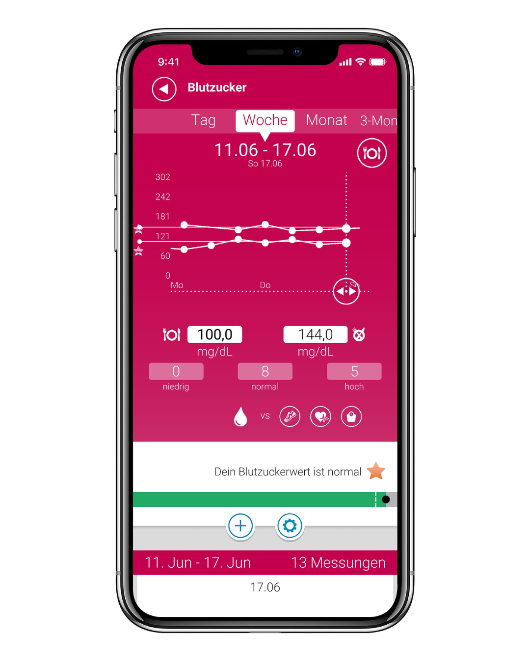 - Durchschnittswertberechnung zur besseren Kontrolle des Blutzuckerverlaufs